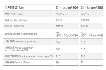 Low ionic resistance, surface resistance ≤0.3 Ω·cm² (30℃, 30mV%KOH)